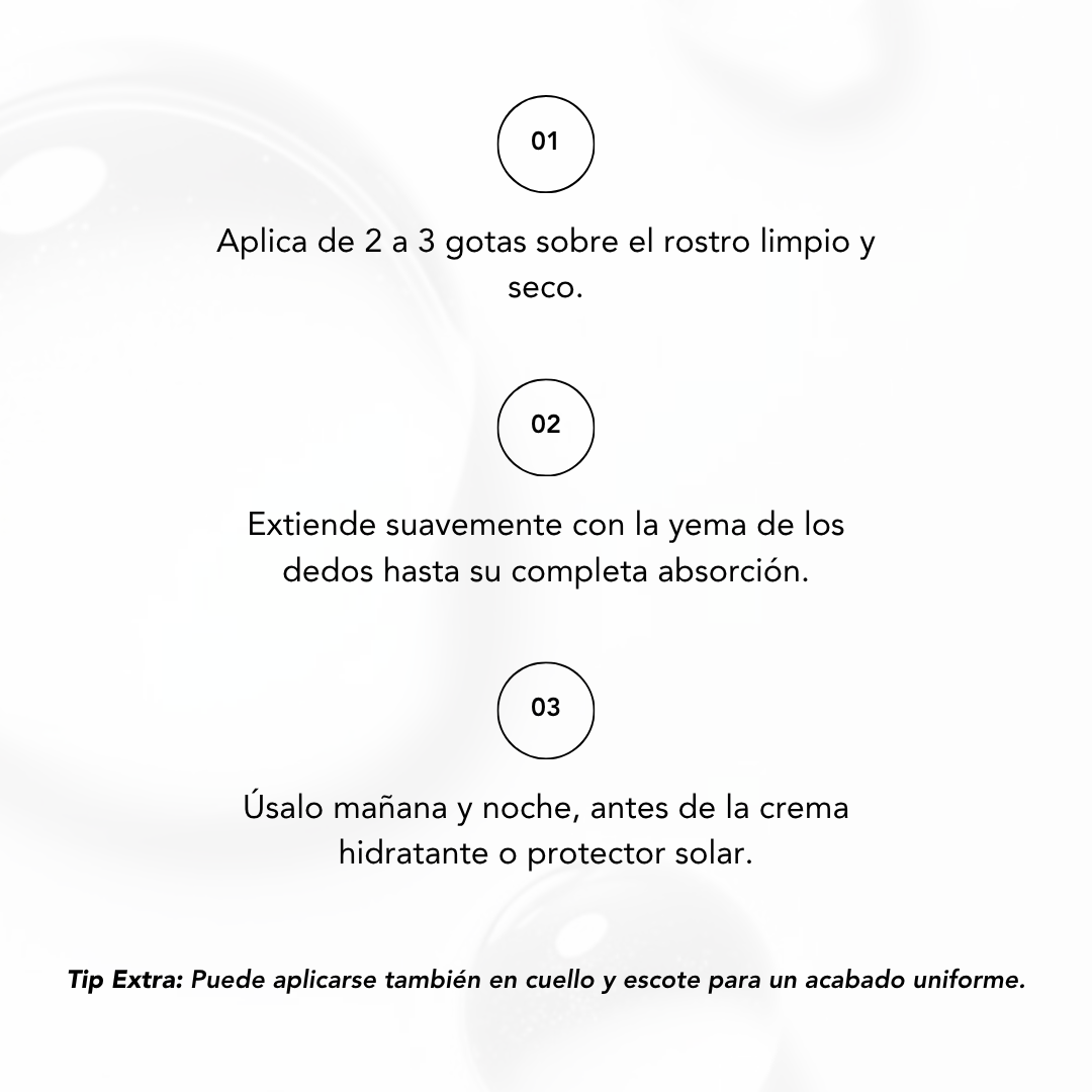 Deja una sensación muy agradable en la piel, se absorbe muy bien, deja un efecto como de piel hidratada pero no grasosa. Llevo poco tiempo usándola, pero creo que será mi nueva niacinamida favorita.